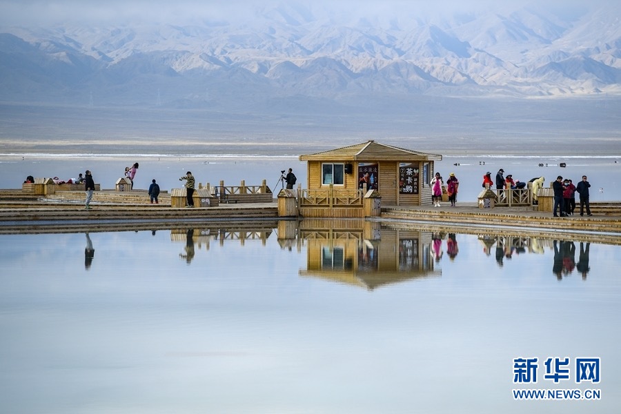 游客在茶卡鹽湖游玩。新華網 潘彬彬 攝