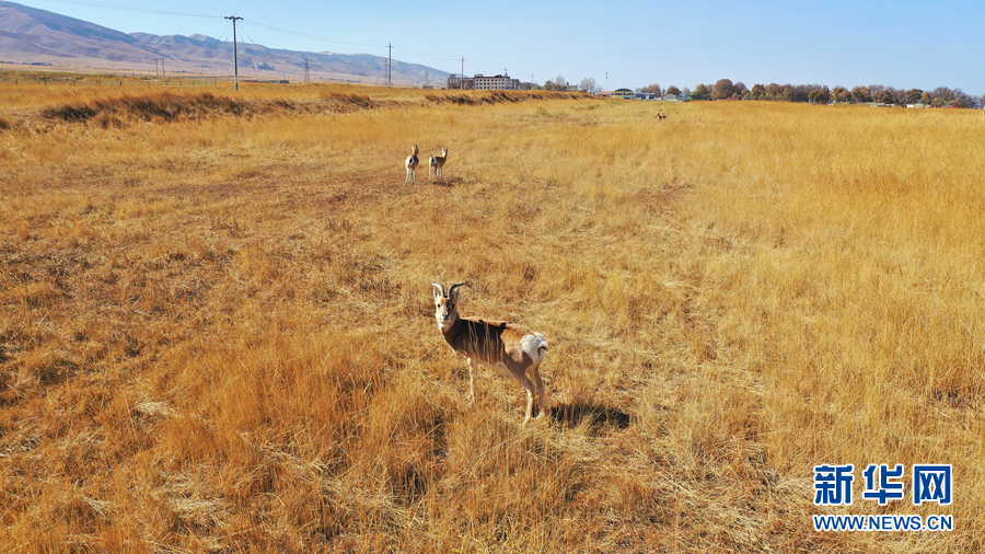 青海湖國家級自然保護(hù)區(qū)管理局南岸保護(hù)站,一群普氏原羚正在悠閑漫步。新華網(wǎng) 汪要強(qiáng) 攝