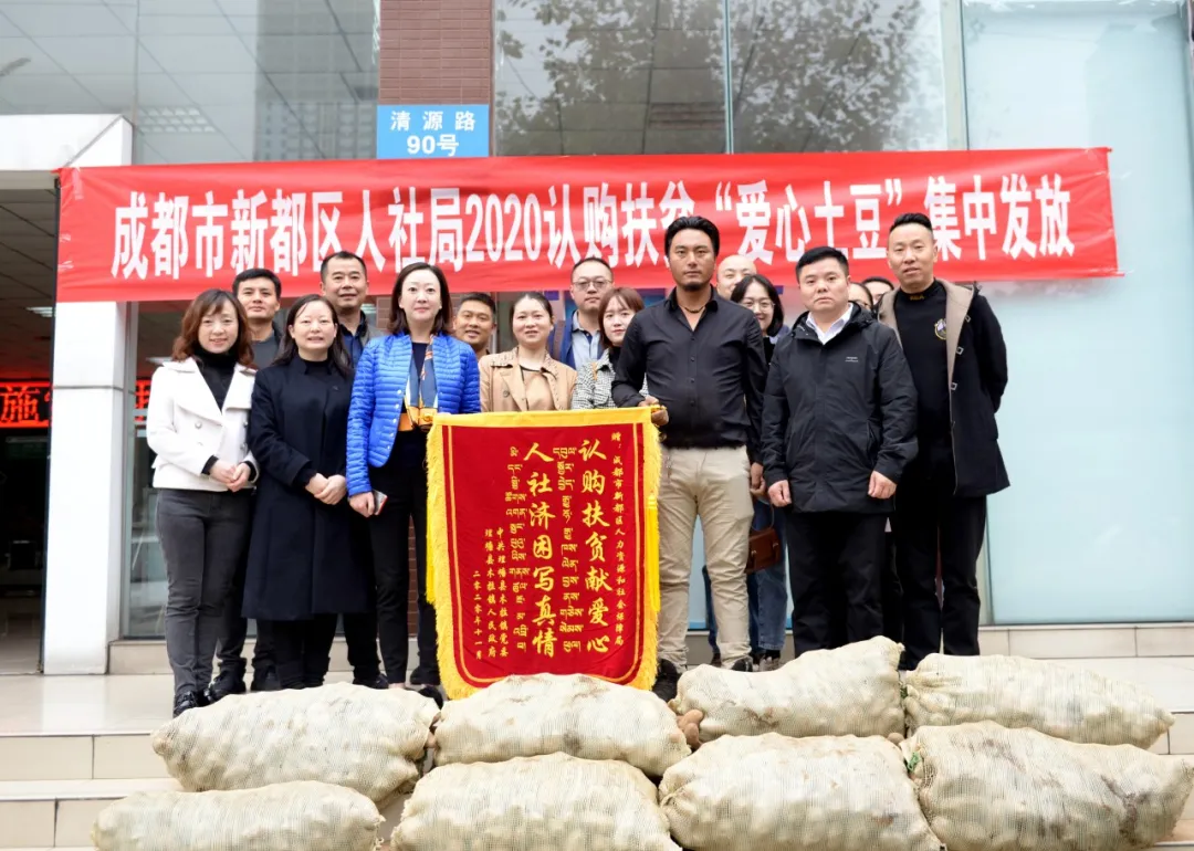 “感謝你們幫助認(rèn)購(gòu)3萬(wàn)余斤土豆……扎西德勒!”11月6日上午8點(diǎn)36分,來自理塘縣木拉鎮(zhèn)卡下村的“愛心土豆”車隊(duì)剛在新都區(qū)人社局停車場(chǎng)停穩(wěn),村長(zhǎng)降央吉村一個(gè)躍步下車,為等候多時(shí)的人社局同志送上“認(rèn)購(gòu)扶貧獻(xiàn)愛心、人社濟(jì)困寫真情”的錦旗。