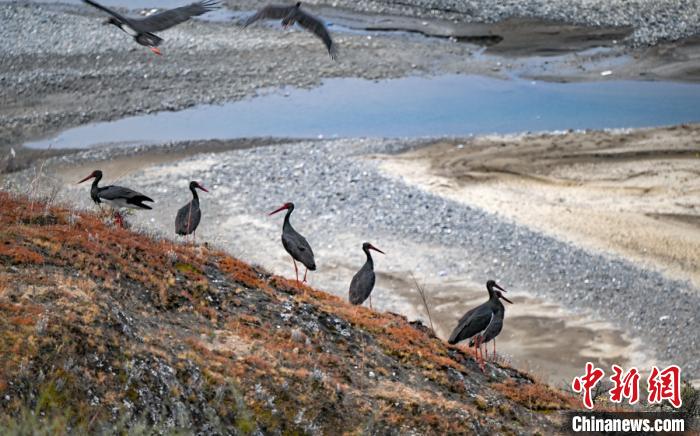 遷徙黑鸛在爐霍濕地公園。益西次里 攝