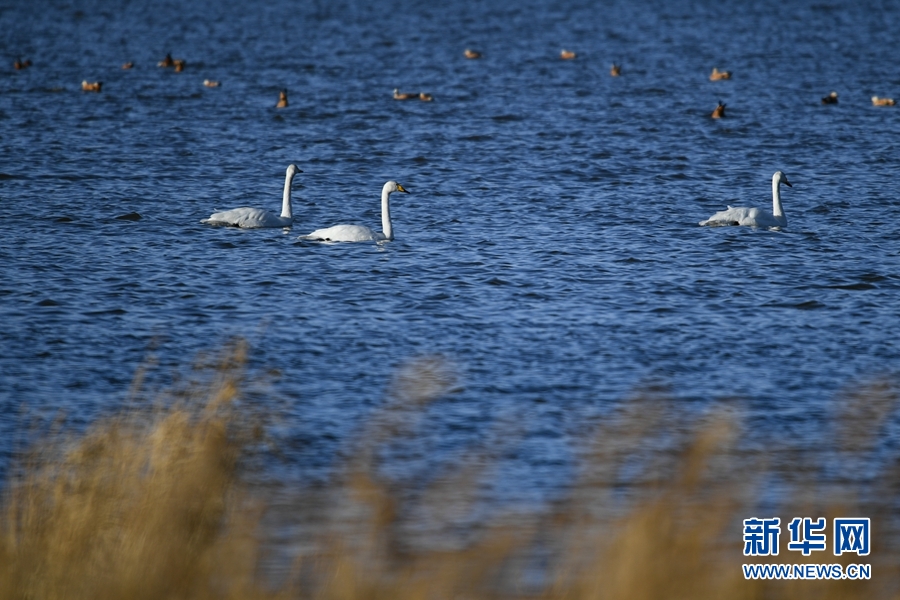 冬季,幾只天鵝在青海省海南藏族自治州貴德縣黃河濕地嬉戲。(資料圖)新華社記者 吳剛攝