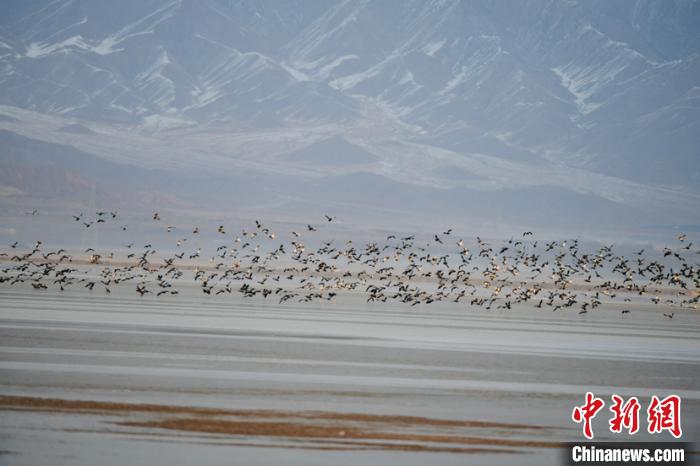 青海柴達木盆地都蘭湖國家濕地公園引數(shù)萬只野生鳥類越冬