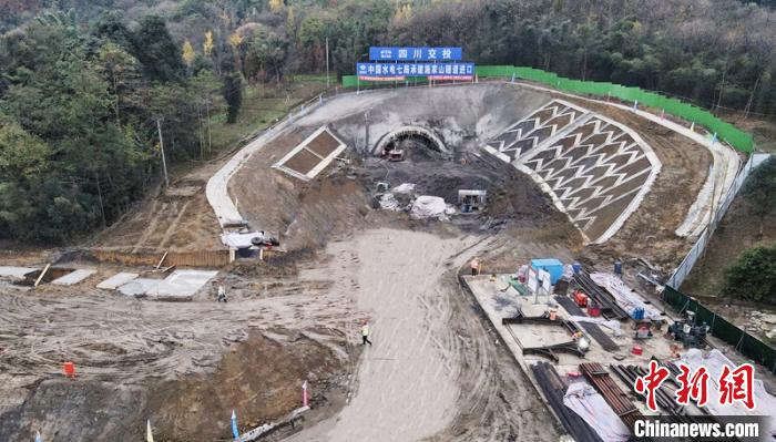 “都四”項(xiàng)目施家山隧道進(jìn)口處施工建設(shè)現(xiàn)場(chǎng)。四川交投集團(tuán)提供
