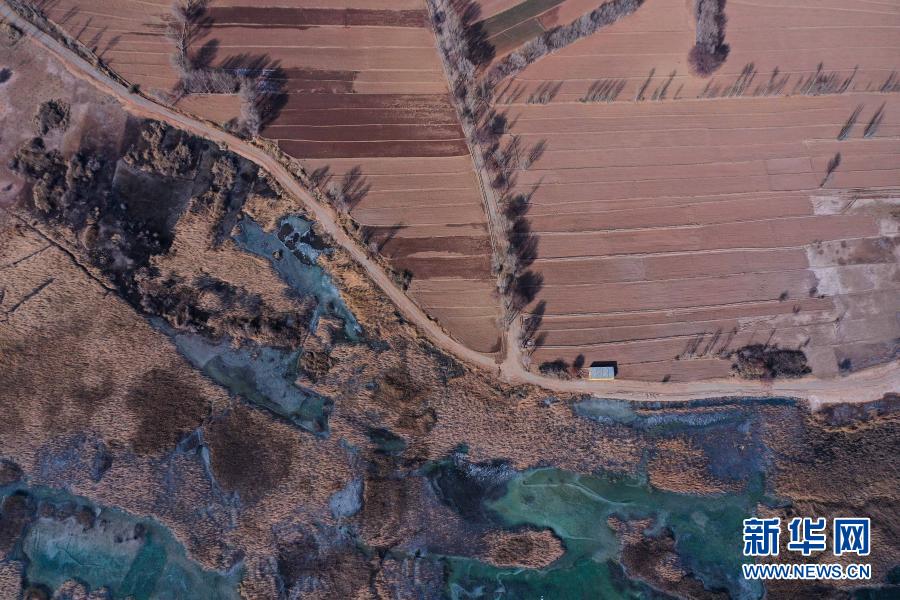 這是12月11日拍攝的千姿湖濕地公園景色(無(wú)人機(jī)照片)。新華社記者 吳剛 攝