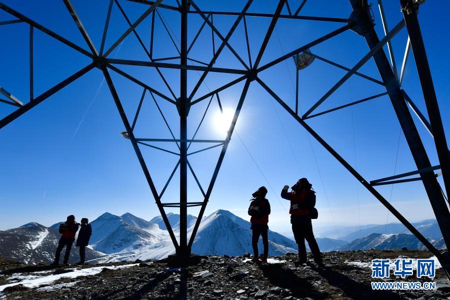 1月21日,國家電網(wǎng)西寧供電公司輸電運(yùn)檢中心運(yùn)檢人員在登山巡檢。新華社記者 張龍 攝