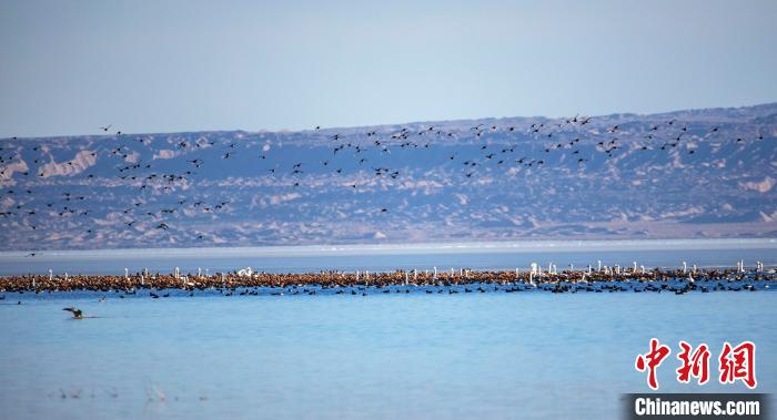 2021年2月2日是第25個“世界濕地日”,地處柴達(dá)木盆地的可魯克湖-托素湖濕地自然保護(hù)區(qū)也引來了萬鳥棲息的壯觀奇景。從可魯克至托素湖的河道到托素湖入水口處,放眼望去,萬鳥棲息,美麗的天鵝如鶴立雞群,點(diǎn)綴著湖面。同時近萬只赤嘴潛鴨等野生鳥類也在此棲息??靵碜鎳熬蹖毰琛笨带B呀。