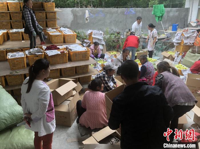 小金縣村民正在打包小金蘋果。張俊磊攝