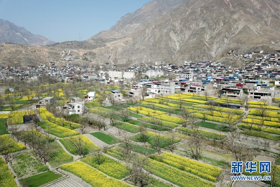 臨近春分時節(jié),甘肅省甘南藏族自治州舟曲縣境內(nèi)的油菜花競相盛開,黃色的油菜花與田野間的綠色植物交相輝映,美不勝收。