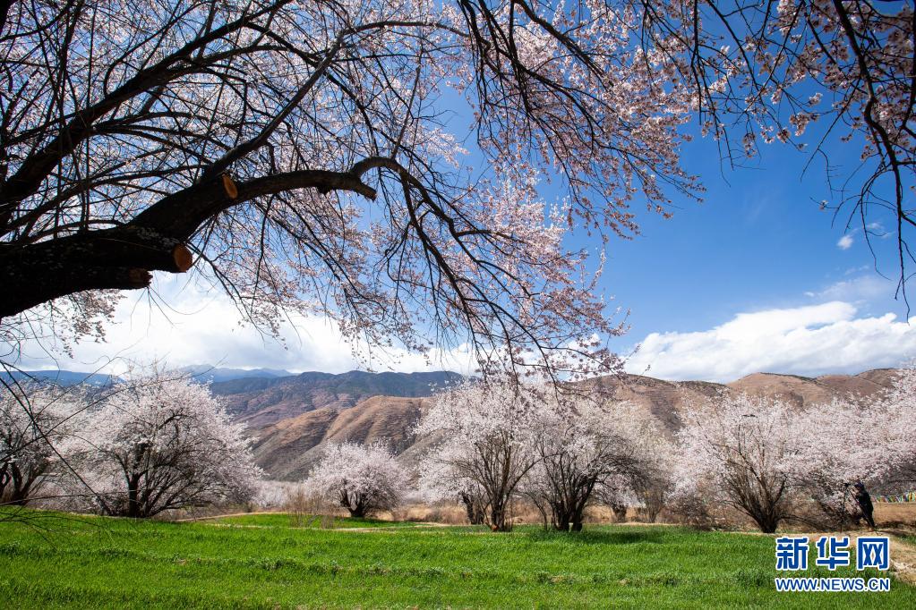 4月3日拍攝的得榮縣白松鎮(zhèn)日當村桃花林一角。新華社記者 江宏景 攝