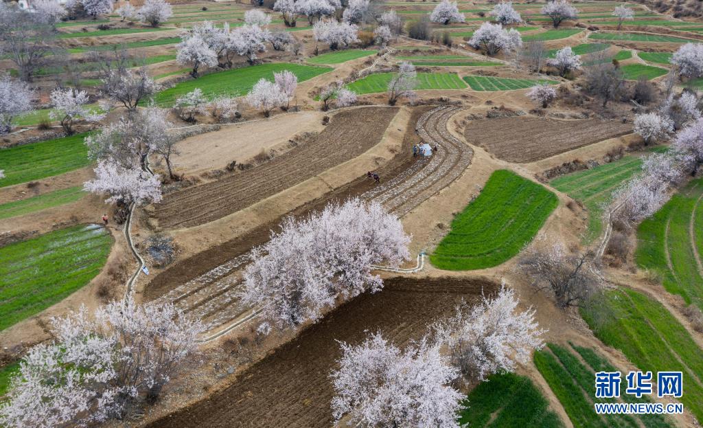 4月3日,在得榮縣白松鎮(zhèn)奪松村,當地藏族群眾在春耕(無人機照片)。新華社記者 江宏景 攝