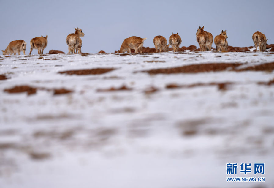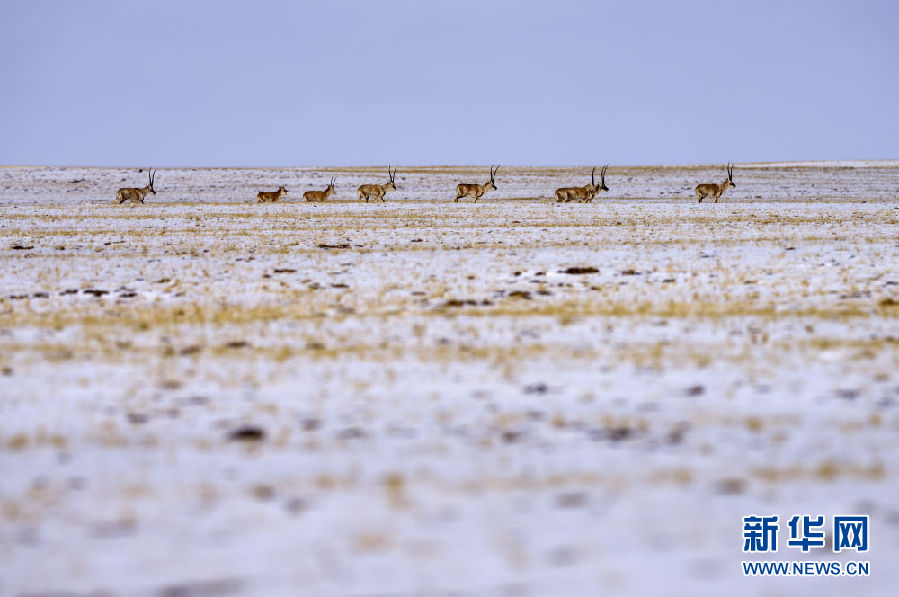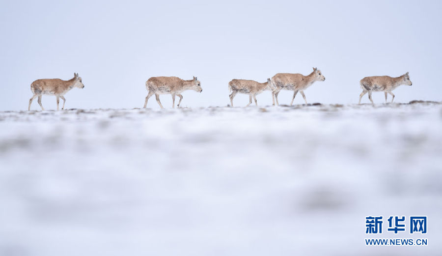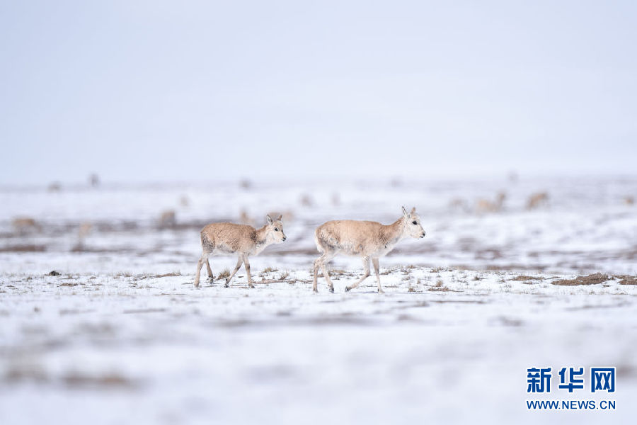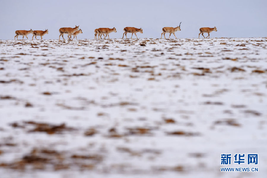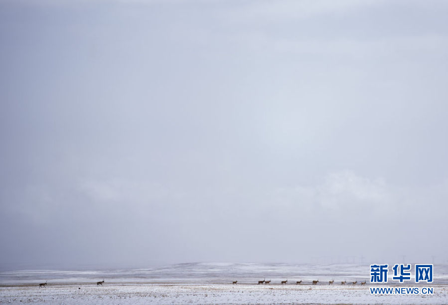 近日,可可西里迎來降雪,大量藏羚羊匯聚在可可西里五道梁地區(qū),踏上遷徙之路。
