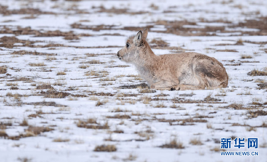 4月20日,一只藏羚羊遷徙途中休息。新華社記者 吳剛 攝
