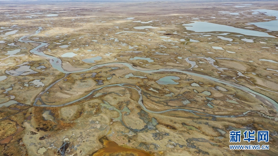 圖為5月26日航拍的瑪多縣境內(nèi)的濕地。位于黃河源頭的瑪多縣境內(nèi)河流密集、湖泊眾多,是三江源國家公園黃河源園區(qū)的核心區(qū)域,是青藏高原重要的生態(tài)屏障,有“黃河源頭第一縣”之稱。
