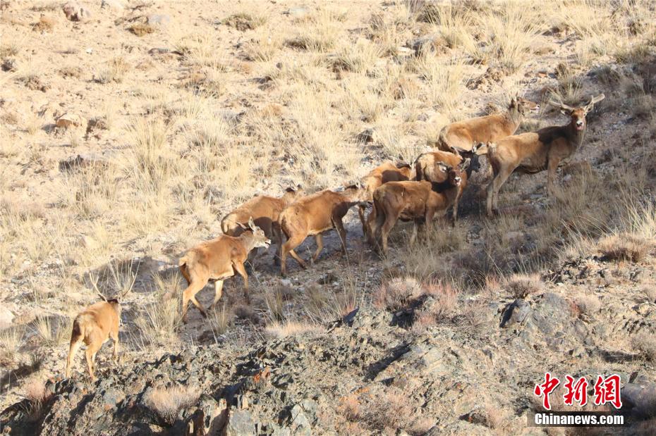 近日,甘肅張掖市祁連山國家公園內野生動物“組團”出沒的難得一見畫面。郎文瑞 攝