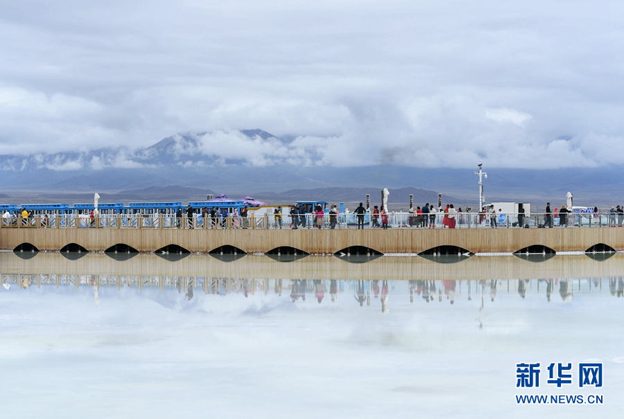 游客在茶卡鹽湖天空之鏡景區(qū)內(nèi)游覽。新華網(wǎng) 潘彬彬 攝