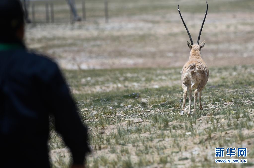 7月7日,在可可西里索南達(dá)杰保護(hù)站野生動物救助中心,一只藏羚羊被放歸大自然。新華社記者 張龍 攝