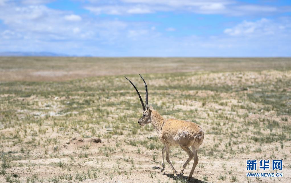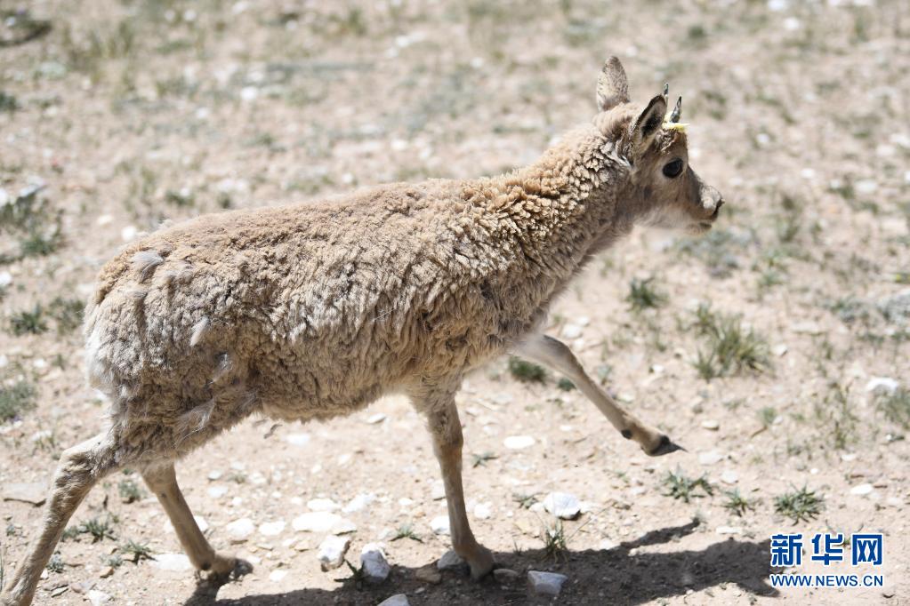這是7月7日在可可西里索南達(dá)杰保護(hù)站野生動物救助中心拍攝的一只被放歸自然的藏羚羊。新華社記者 張龍 攝
