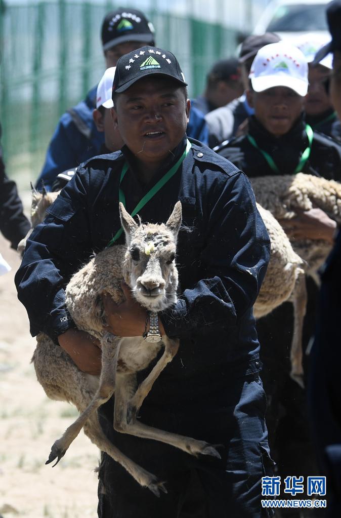 7月7日,在可可西里索南達(dá)杰保護(hù)站野生動物救助中心,藏羚羊被放歸大自然。新華社記者 張龍 攝