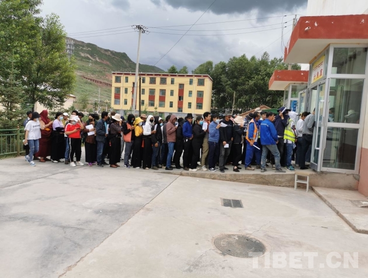 圖為果洛藏族自治州瑪沁縣拉加鎮(zhèn)衛(wèi)生院排隊等候義診的當(dāng)?shù)厝罕?/p>