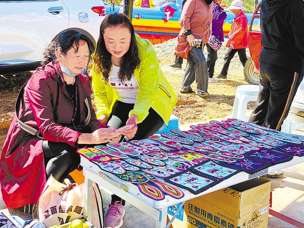 游客正在購買當?shù)靥厣止に嚻?。欒雨?攝