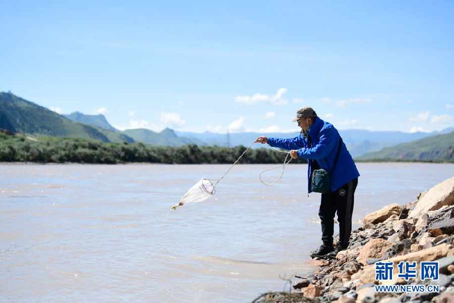 2021年長江源綜合科考的科考隊員趙良元在通天河流域觀測水文(7月24日攝)。新華社記者 張龍 攝