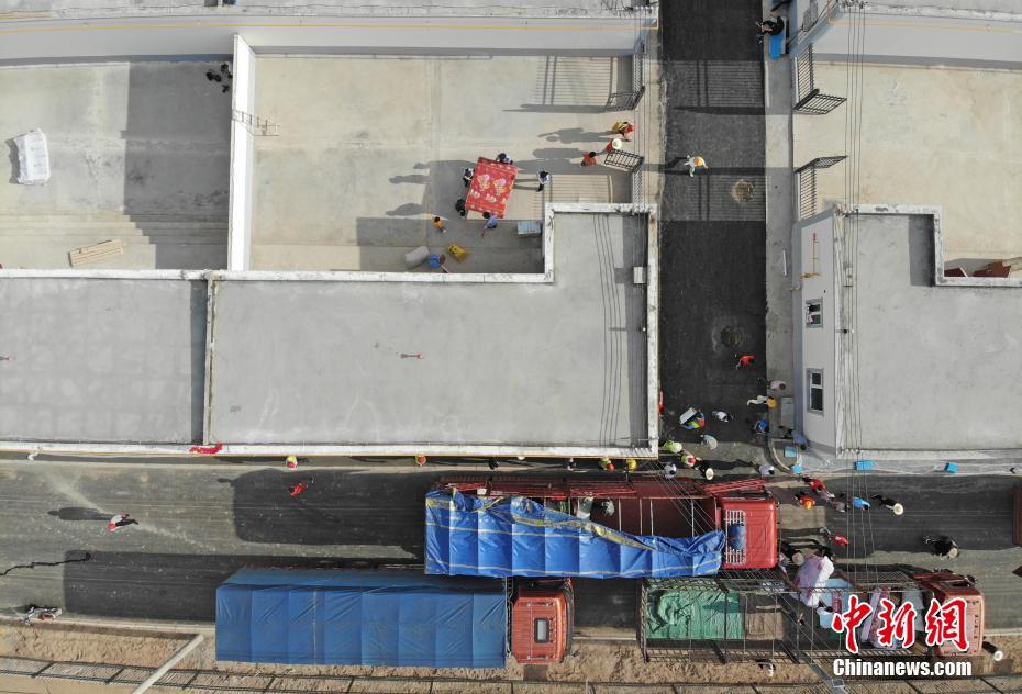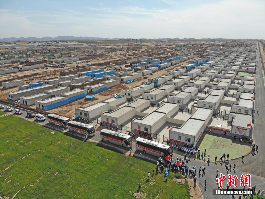 8月7日,甘肅省舟曲縣首批60戶289名地質(zhì)災(zāi)害避險(xiǎn)搬遷村民到達(dá)蘭州新區(qū)并入住。甘肅舟曲縣啟動(dòng)地質(zhì)災(zāi)害避險(xiǎn)搬遷工作,第一批次60戶289人集中告別故土,乘車前往數(shù)百公里之外的蘭州新區(qū)。(無人機(jī)拍攝) 中新社記者 楊艷敏 攝