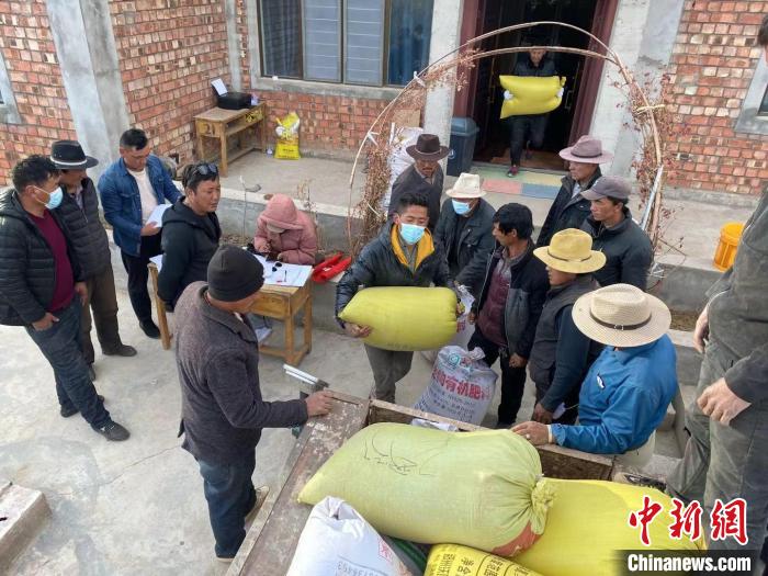圖為給牧戶們發(fā)放種子。受訪者供圖