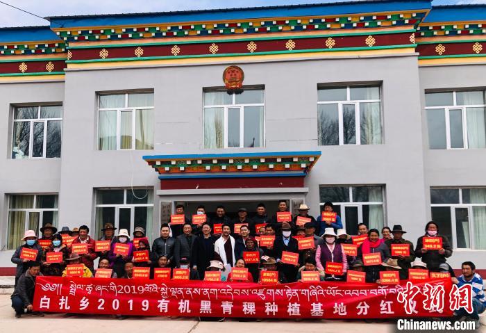圖為有機(jī)黑青稞種植基地分紅儀式現(xiàn)場(chǎng)。受訪者供圖