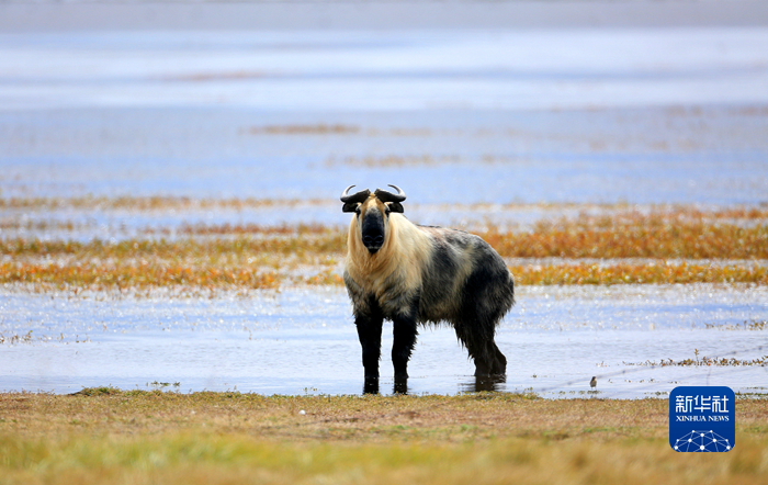 甘肅尕海則岔國(guó)家級(jí)自然保護(hù)區(qū)管理局尕海保護(hù)站工作人員在尕海湖畔拍攝到一頭羚牛。新華社 張勇 攝