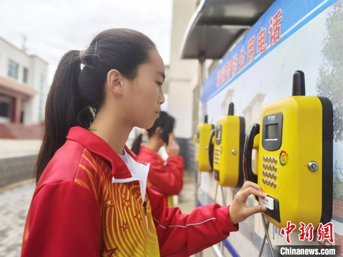 圖為臨潭一中學(xué)生王若玉刷電子?;战o家人打電話。張婧 攝