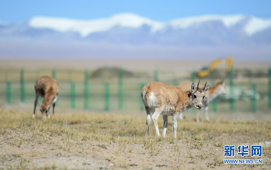 在可可西里國家級自然保護(hù)區(qū)索南達(dá)杰保護(hù)站,幾只藏羚羊在野生動物救助中心活動(9月28日攝)。新華社記者 嚴(yán)賦憬 攝