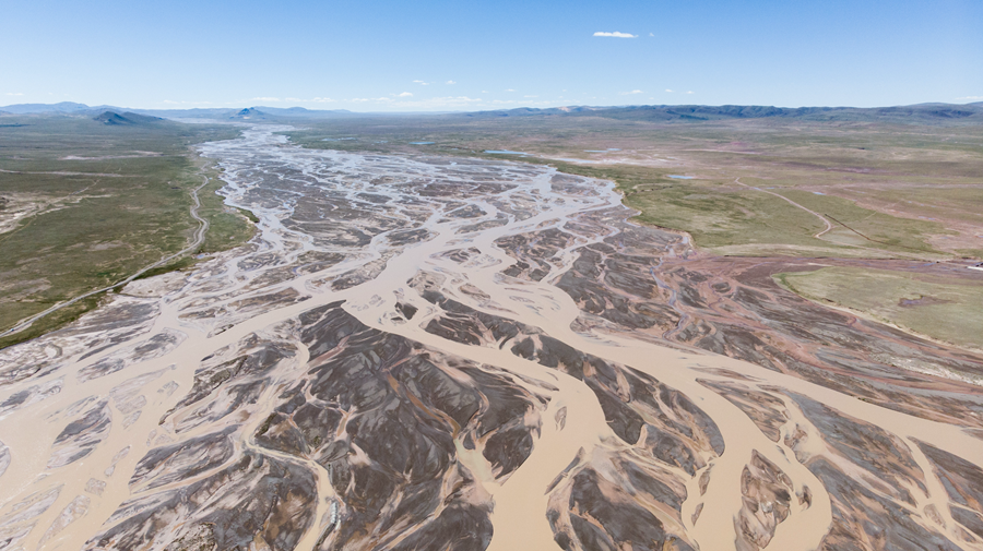 這是2019年8月9日拍攝到的位于青海省格爾木市唐古拉山鎮(zhèn)的長江正源沱沱河的照片(無人機照片)。新華社記者 吳剛 攝
