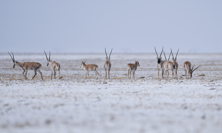 4月20日,藏羚羊在三江源可可西里地區(qū)活動。新華社記者 吳剛 攝