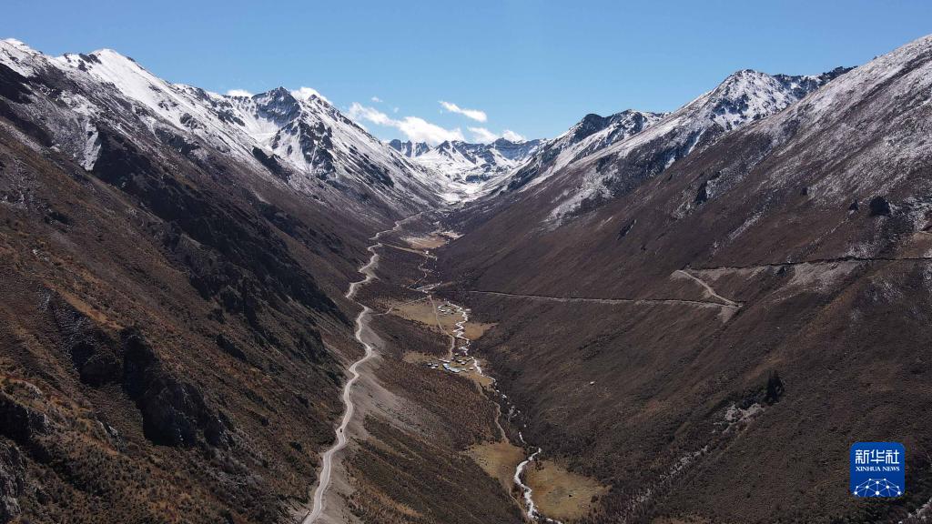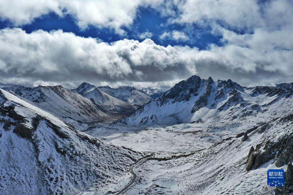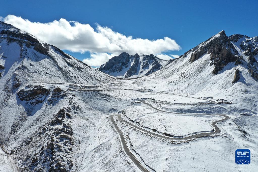 這是四川省甘孜藏族自治州巴塘縣境內(nèi)的通往藏巴拉雪山埡口的公路(10月23日攝,無人機全景照片)。新華社記者 胥冰潔 攝
