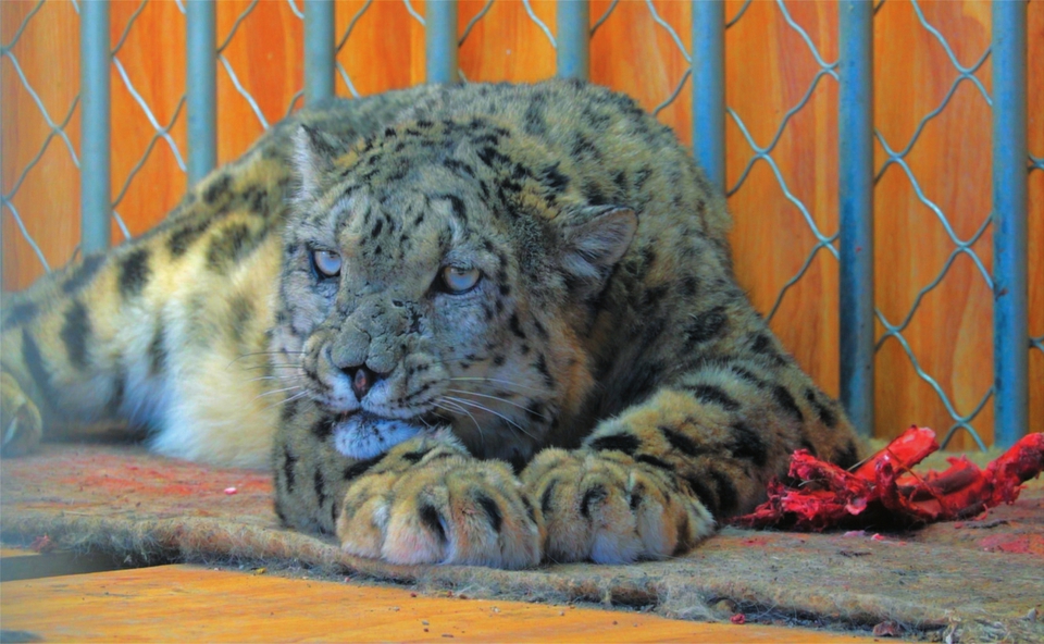 根呷告訴記者,當(dāng)年雪豹傷愈后曾被放歸山林,但他們觀察發(fā)現(xiàn),它已經(jīng)失去了野外生存的能力,“它的野性依然存在,但沒(méi)法捕獵了。這是一只老年雪豹,牙齒已經(jīng)被磨平了,按人的年齡推斷,可能相當(dāng)于七八十歲的老人?!?/p>