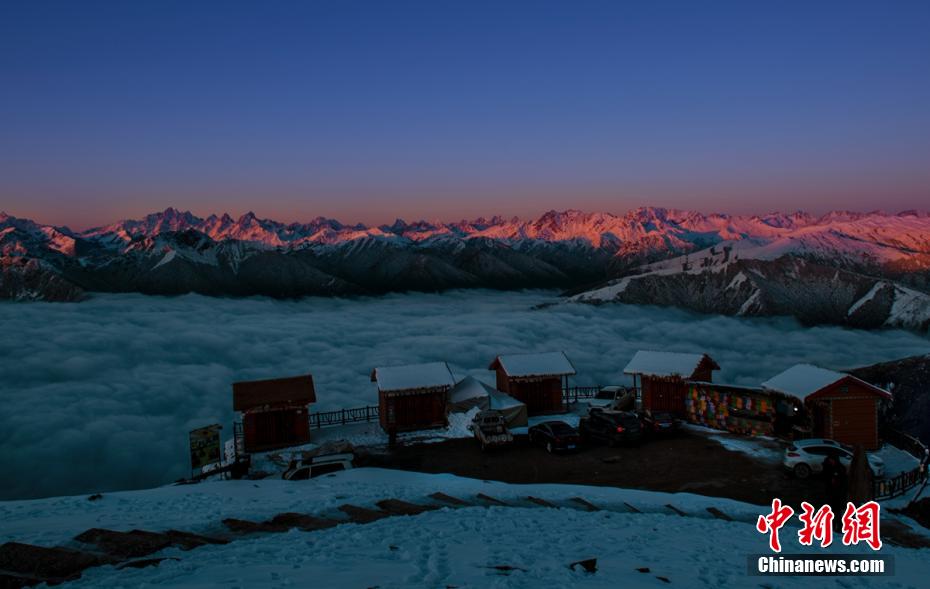 連日來(lái),位于四川省雅安市寶興縣磽磧藏族鄉(xiāng)的達(dá)瓦更扎景區(qū)雪后放晴。期間,日出、藍(lán)天、云海、雪山、星空等美景如畫(huà),夢(mèng)幻飄渺,蔚為壯觀。