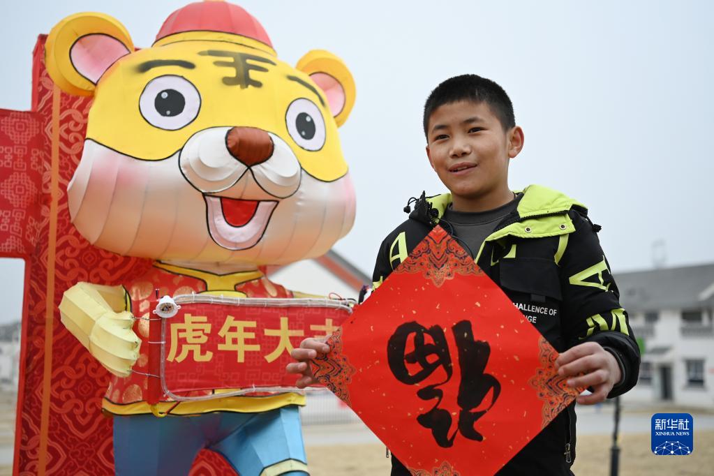 1月25日,在蘭州新區(qū)舟曲避險(xiǎn)搬遷安置點(diǎn),搬遷群眾展示領(lǐng)取的福字。新華社記者 范培珅 攝