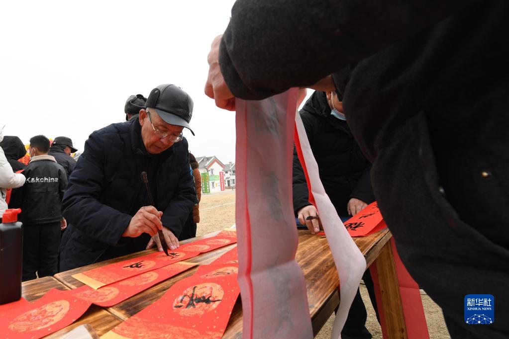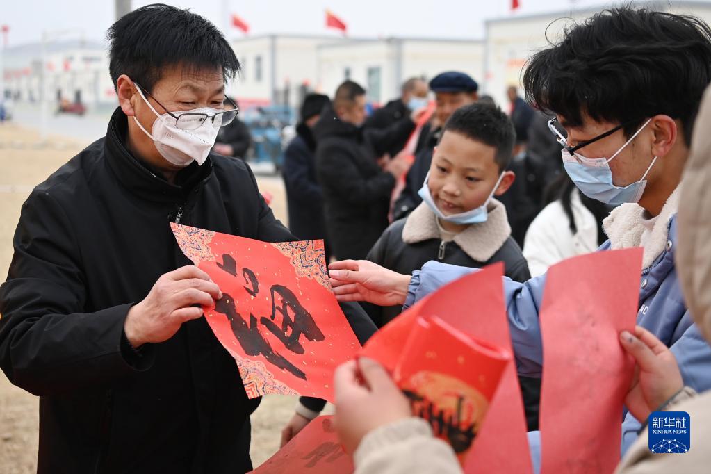 1月25日,在蘭州新區(qū)舟曲避險(xiǎn)搬遷安置點(diǎn),舟曲地質(zhì)災(zāi)害避險(xiǎn)搬遷第一臨時(shí)黨支部組織書法家給搬遷群眾送春聯(lián)。新華社記者 范培珅 攝