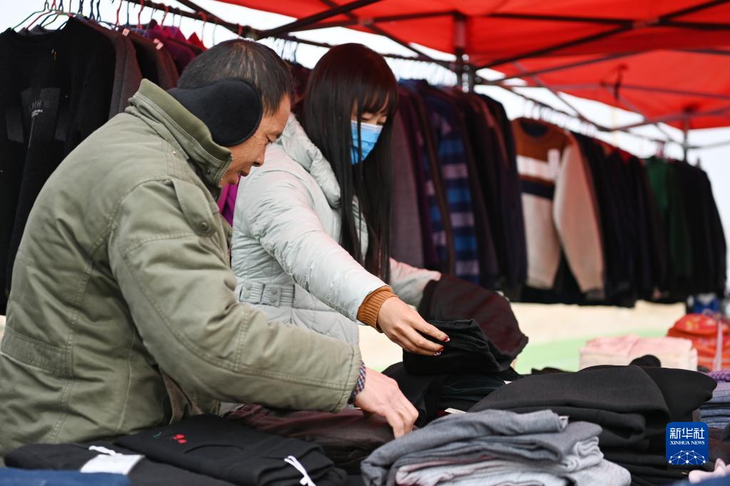 1月25日,在蘭州新區(qū)舟曲避險(xiǎn)搬遷安置點(diǎn),搬遷群眾置辦年貨。新華社記者 范培珅 攝