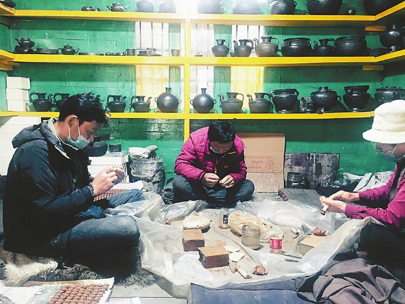 2021年11月被評(píng)為第七批省級(jí)非遺傳承人的董察日多,是甘孜州青銅鍛造技藝名匠董察白瑪?shù)暮笠?。董察白瑪是舊時(shí)德格土司五大家廟的特約工匠,被譽(yù)為神匠化身,他開(kāi)創(chuàng)的董察花色青銅器物制作工藝,一直在家族中流傳。