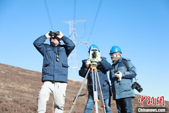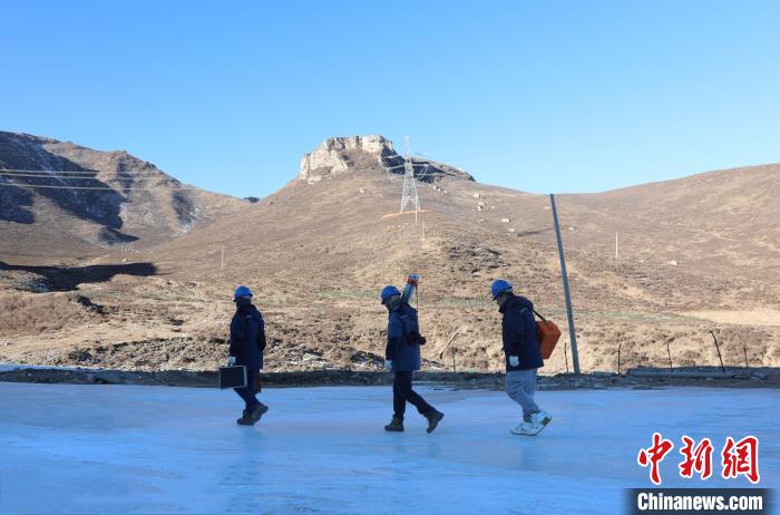圖為國網(wǎng)青海檢修公司輸電運檢人員李承鴻、楊濤、梁威對750千伏拉寧線開展春節(jié)前特巡。謝莉蓉 攝
