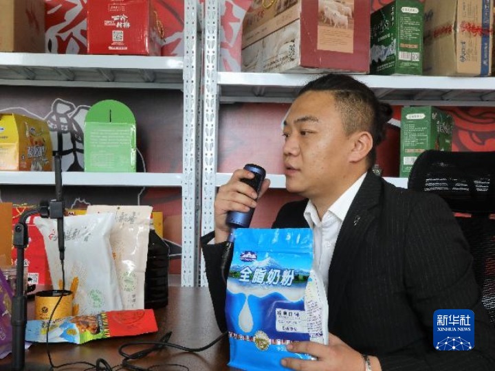 1月25日,網(wǎng)絡主播騰格爾在直播間為粉絲們介紹來自家鄉(xiāng)的農畜產(chǎn)品。新華社 央秀達珍 攝