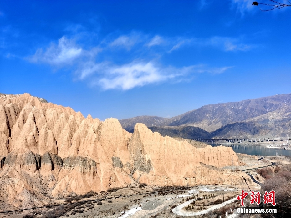 圖為2月22日在青海省尖扎縣黃河岸畔拍攝的丹霞地貌。 中新社記者 張?zhí)砀?攝