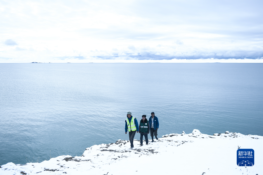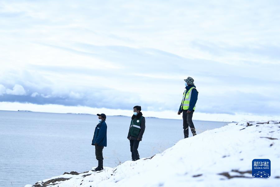 2021年10月20日,在青海省果洛藏族自治州瑪多縣扎陵湖鄉(xiāng)勒那村,三江源國家公園黃河源園區(qū)生態(tài)管護(hù)員在扎陵湖畔巡護(hù)。新華社記者 李占軼 攝