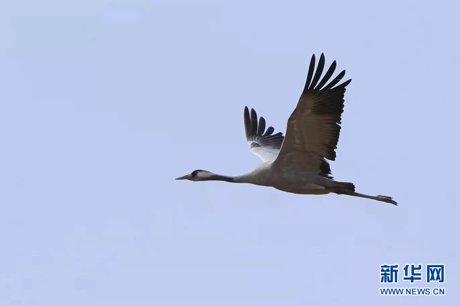攝影愛(ài)好者在都蘭縣巴隆鄉(xiāng)境內(nèi)拍攝到的灰鶴。新華網(wǎng) 松太加 攝