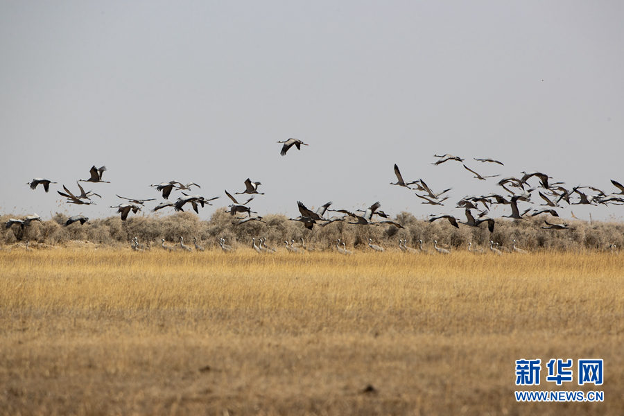 近萬(wàn)只灰鶴停歇青海都蘭