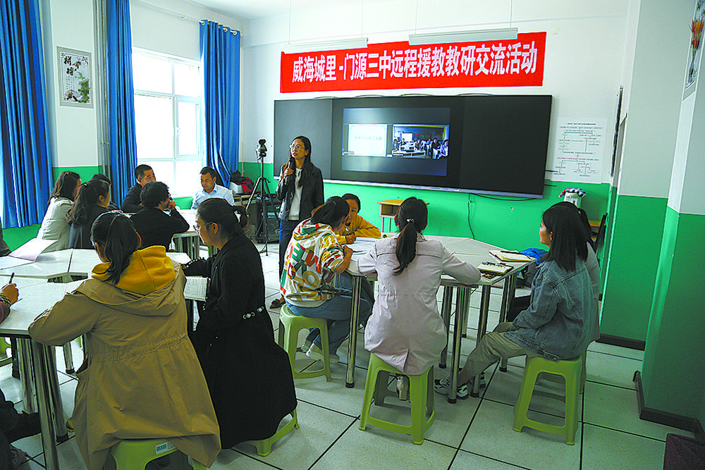 2019年9月,山東援青在門源縣啟動(dòng)“威海—門源遠(yuǎn)程智慧援教工程”試點(diǎn)。目前,山東援青累計(jì)投入資金870余萬(wàn)元,基本實(shí)現(xiàn)了山東四市對(duì)海北四縣中小學(xué)遠(yuǎn)程智慧援教全覆蓋,推動(dòng)山東與海北結(jié)對(duì)學(xué)校老師之間的同步備課、同步聽(tīng)課、同步評(píng)課、同步研課,先后開展活動(dòng)800余次,兩地6000多名教師參與,山東老師不到高原也能參與援青支教,使海北學(xué)子不離家鄉(xiāng)也能享受優(yōu)質(zhì)教育。