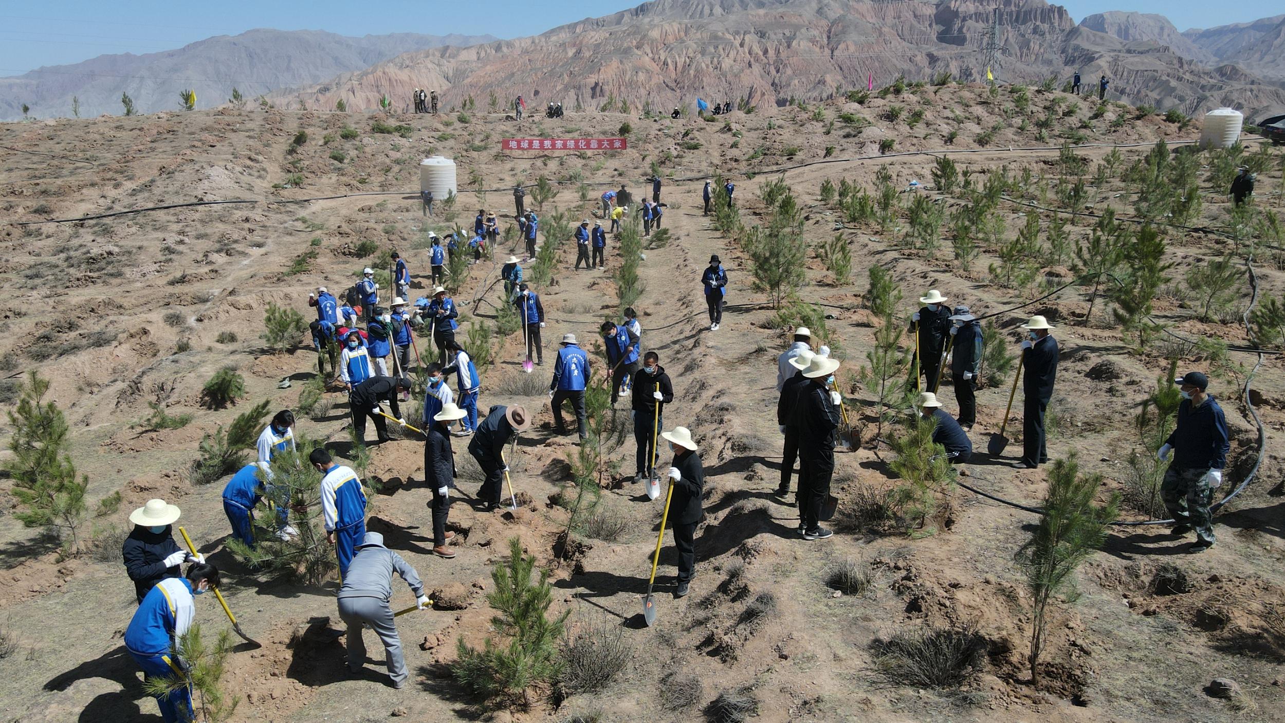 植樹(shù)現(xiàn)場(chǎng),“播撒一顆種子 收獲一片綠色”“綠水青山就是金山銀山”等橫幅隨處可見(jiàn)。黃南州四大班子成員與機(jī)關(guān)干部一起揮動(dòng)鐵鍬,挖坑、抬樹(shù)、扶苗、培土、踩實(shí)、澆水……每一道工序都做得十分認(rèn)真細(xì)致,掀起了春季綠化造林的高潮。