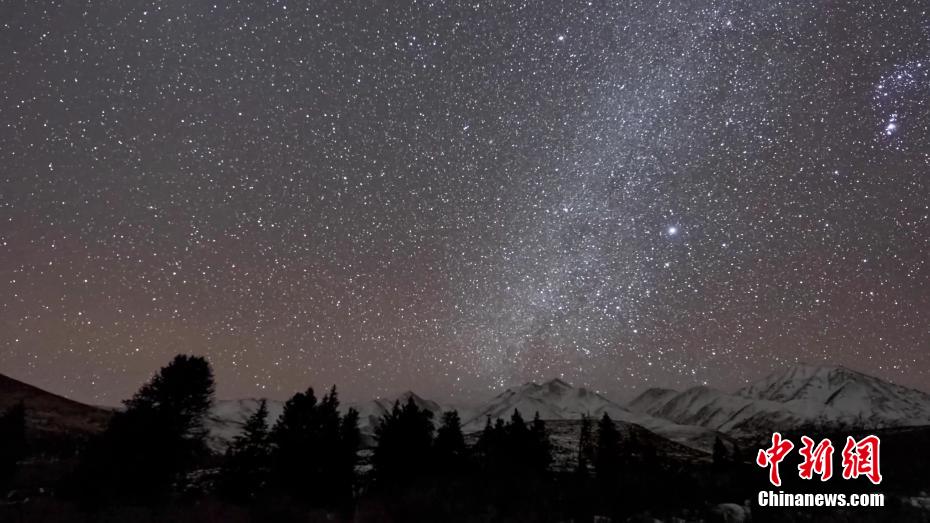 近日,攝影愛(ài)好者在位于祁連山腹地的青海省海北藏族自治州祁連縣,用延時(shí)攝像的方式記錄下鮮有人知的春日祁連山壯麗星河和絕美晨曦。祁連山海拔在4000米至6000米之間,海拔4000米以上的地方,稱為雪線,一般而言,冰天雪地,萬(wàn)物絕跡。雪線之上,夜晚布滿繁星的銀河是祁連山最美奇觀之一。清晨,銀白的曙光漸顯緋紅,朝霞映在當(dāng)?shù)孛癖娦闹小吧裆健迸P纳缴希吧裆健蓖鹑缟倌昕±蕡?jiān)毅。馬志原 攝