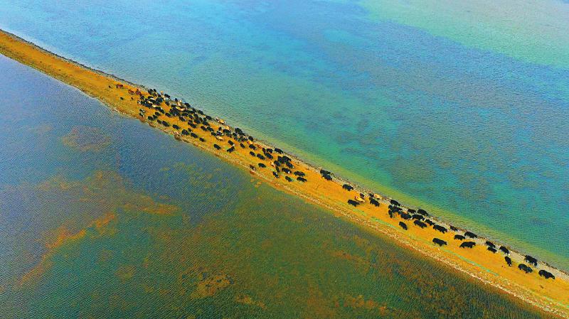 甘孜州石渠縣太陽湖,牧民在放牧點(diǎn)放養(yǎng)牦牛。 根呷 攝